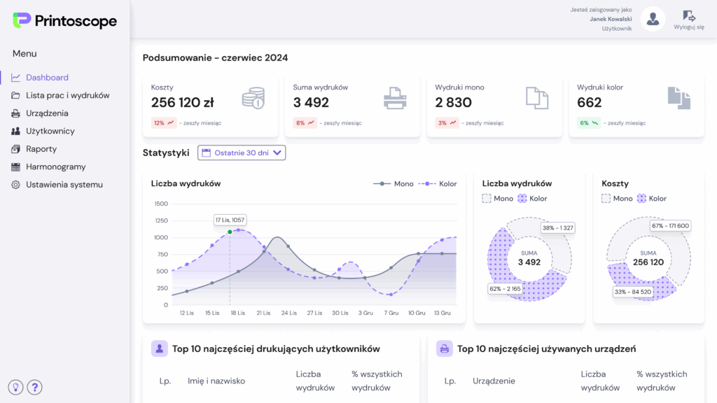 Od 2011 roku znacząco zwiększyliśmy zespół programistów, co umożliwiło wdrożenie nowoczesnych technologii oraz intensywny rozwój systemu. Efektem tych działań była premiera nowej wersji Printoscope w 2024 roku – stabilnej, bezpiecznej i wyposażonej w nowoczesny interfejs dla użytkownika.